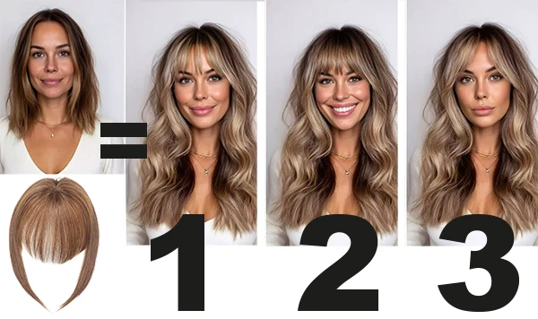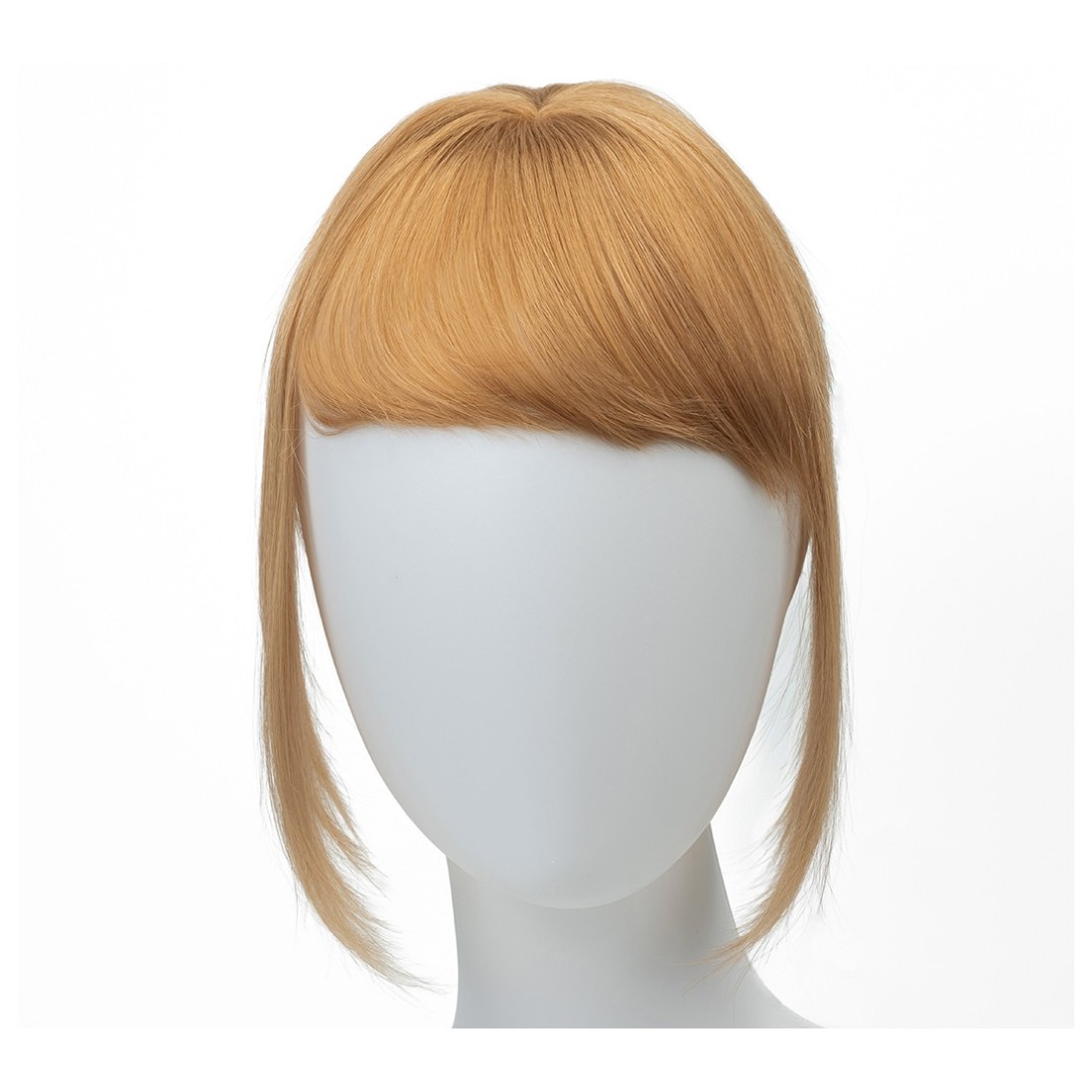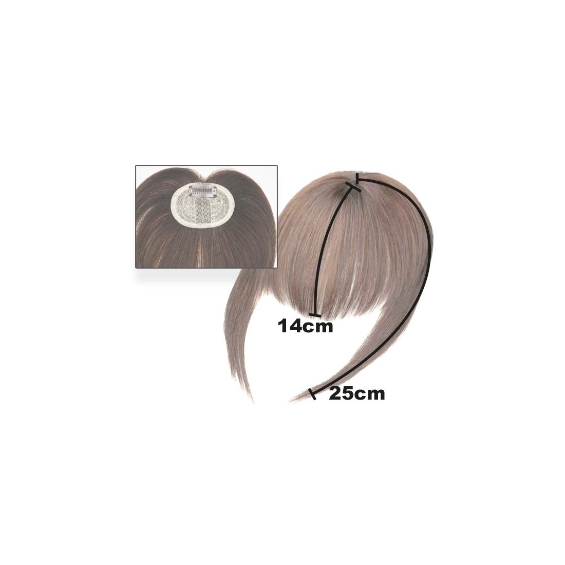 La frange à clip en cheveux naturels est une pièce capillaire en cheveux humains slaves vierges, fixée sur un clip discret, permettant de porter ou de tester une frange sans engagement — sans coupe, sans colle. La frange mesure 14 cm de longueur frontale, complétée de deux mèches latérales de 25 cm pour un encadrement naturel du visage. Elle se pose en moins de 2 minutes et se retire sans trace. Disponible en large choix de nuances naturelles.